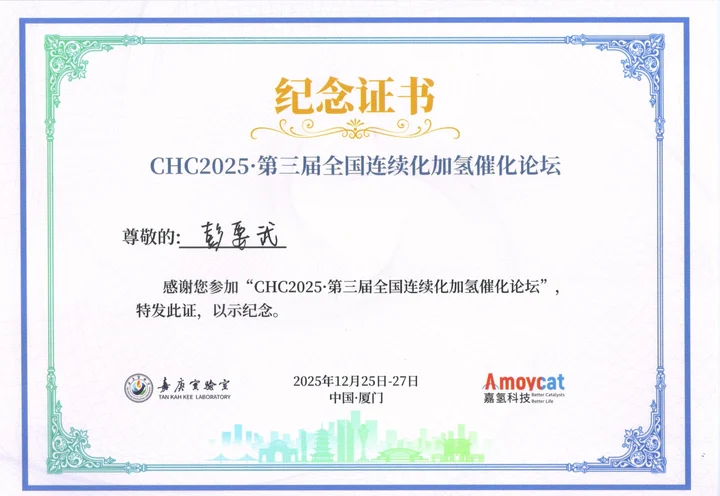 2025年12月25日至27日,CHC2025·第三届全国连续化加氢催化论坛在中国厦门成功举办。我公司董事长彭要武与副总经理田文敬应邀参加了本次会议。本次论坛由厦门大学嘉庚创新实验室主办,来自全国的加氢催化领域专家、学者及产业界代表齐聚一堂,共同探讨连续化加氢催化技术的最新进展与未来发展方向,彭董事长与郑南峰院士进行了亲切交流并邀请郑院士于2026年来我公司指导工作。