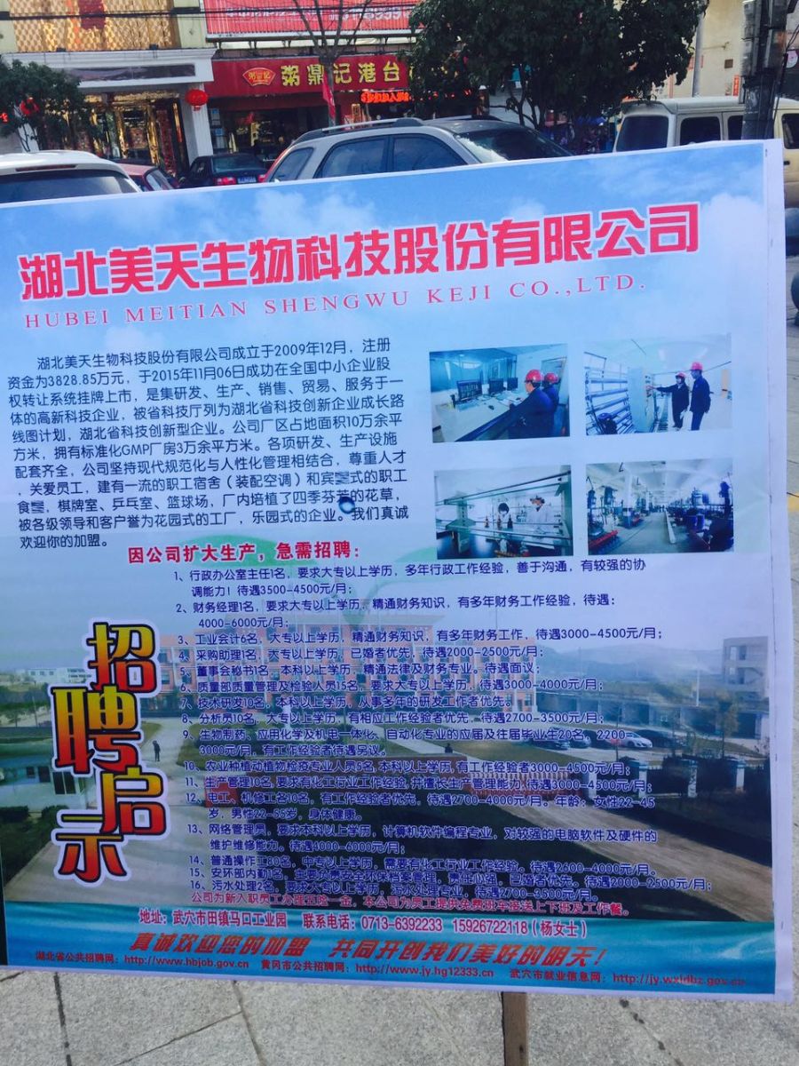 9、生物制药、应用化学及机电一体化、自动化专业的应届及往届毕业生20名,2200-3000元/月,有工作经验者待遇另议。