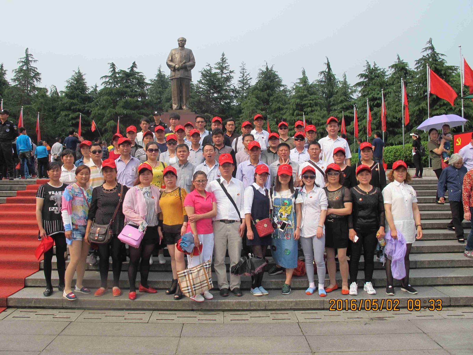 在韶山毛主席铜像广场所有参与旅游的员工都面对毛主席铜像脱帽、默哀、三次鞠躬、并敬献了花篮,表达了大家对开国领袖的无限敬仰之情。