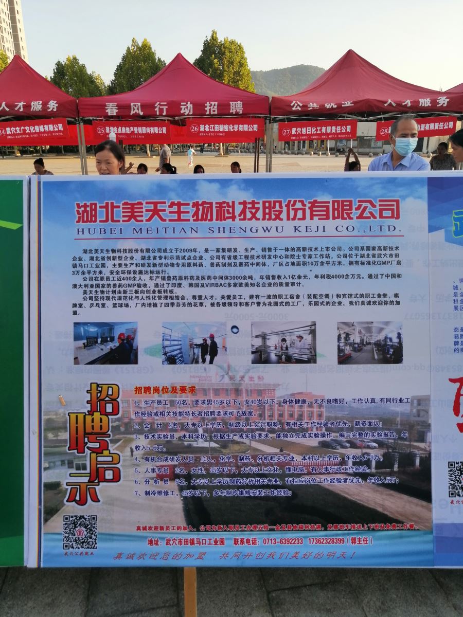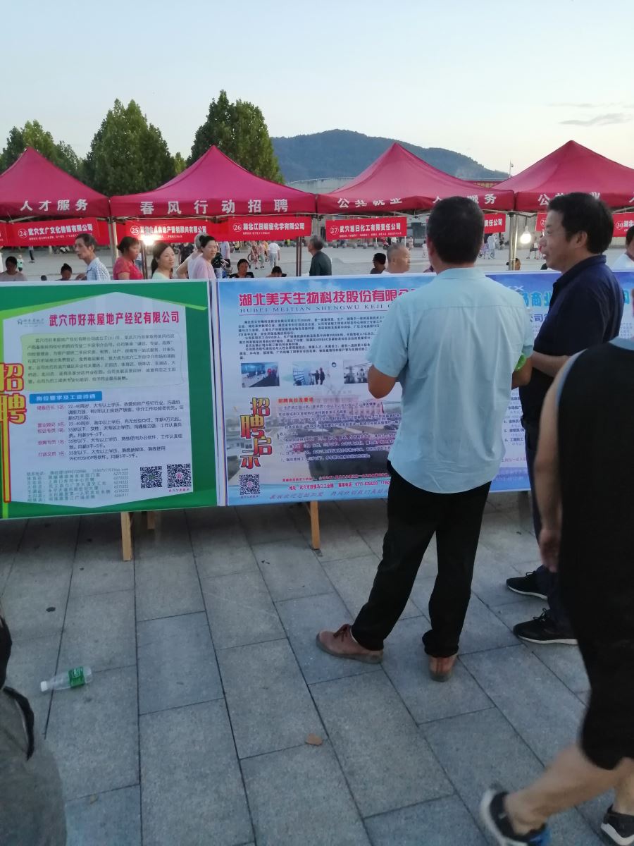 •         武穴市2020年长江退捕渔民暨武穴电子信息园,企业“夜市招聘”专场招聘会于8月13日,在武穴市体育广场隆重举行。本次专场招聘会由武穴市人力资源和社会保障局主办,武穴市农业农村局、武穴市全民健身中心协办。